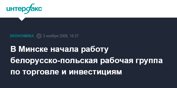Минск. 3 ноября. INTERFAX.RU - В Минске в министерстве иностранных дел в понедельник открылось заседание белорусско- польской группы по торговле и инвестициям.