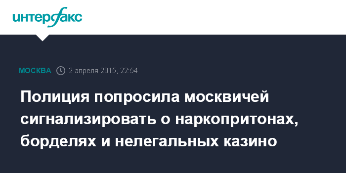 Полиция попросила москвичей сигнализировать о наркопритонах, борделях и нелегальных казино