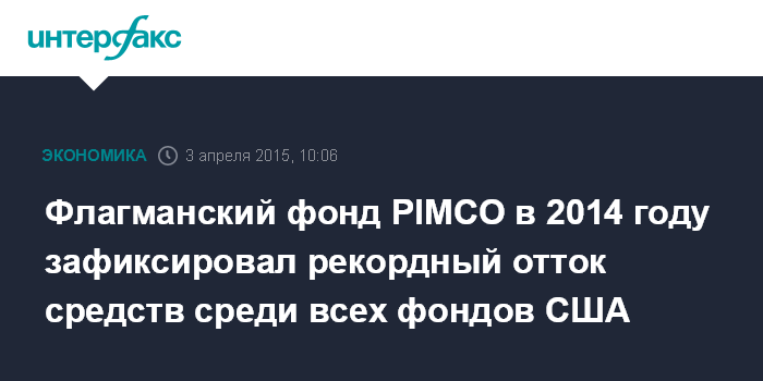Флагманский фонд PIMCO в 2014 году зафиксировал рекордный отток средств среди всех фондов США