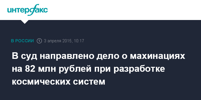 В суд направлено дело о махинациях на 82 млн рублей при разработке космических систем