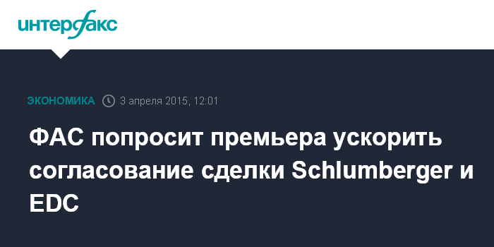 ФАС попросит премьера ускорить согласование сделки Schlumberger и EDC