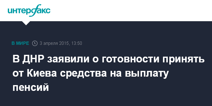 Москва. 3 апреля. INTERFAX.RU - В самопровозглашенной ДНР заявили о готовности содействовать международному контролю за целевым расходованием средств на выплату пенсий и пособий в случае их поступления от властей Украины.