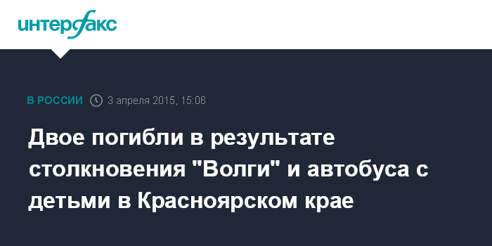 Двое погибли в результате столкновения "Волги" и автобуса с детьми в Красноярском крае