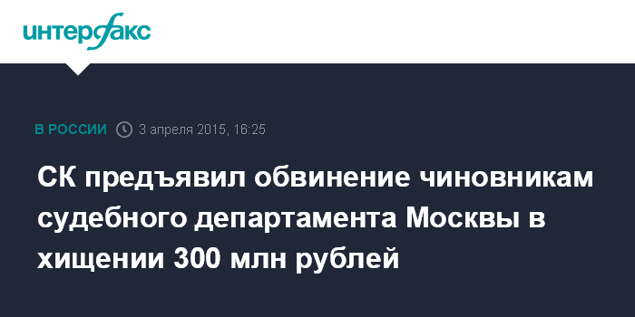 СК предъявил обвинение чиновникам судебного департамента Москвы в хищении 300 млн рублей