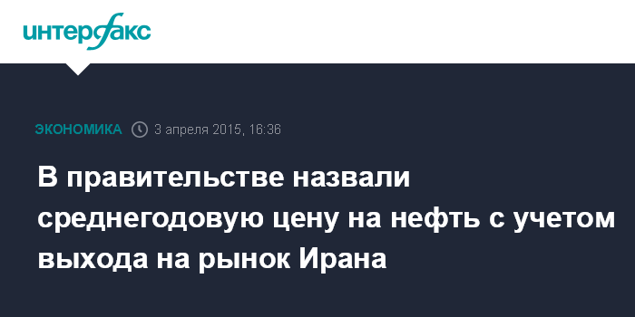Москва. 3 апреля. INTERFAX.RU – Вице-премьер Аркадий Дворкович считает реалистичным действующий прогноз по среднегодовой цене на нефть в 2015 году в $50 за баррель даже с учетом выхода на рынок нефти из Ирана.