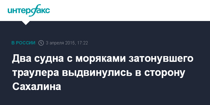 Москва. 3 апреля. INTERFAX.RU - Суда "Справедливый" и "Андромеда", на борту которых находятся выжившие и тела погибших при кораблекрушении траулера "Дальний Восток" в Охотском море, отправились с места трагедии в сахалинский порт Корсаков.