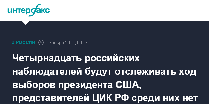 В октябре официальный представитель МИД РФ Андрей Нестеренко сообщил, что "в соответствии с распространенным в ОБСЕ приглашением американской стороны Российская Федерация направляет в США для наблюдения за предстоящими там 4 ноября выборами президента и в конгресс восемь долгосрочных наблюдателей".
