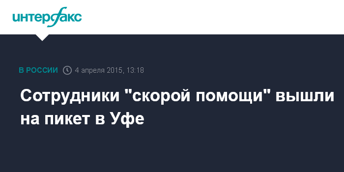 Москва. 4 апреля. INTERFAX.RU - Прекратить административное давление на сотрудников станции скорой медицинской помощи (ССМП) Уфы и укомплектовать выездные бригады потребовали участники пикета, прошедшего в субботу в Уфе.