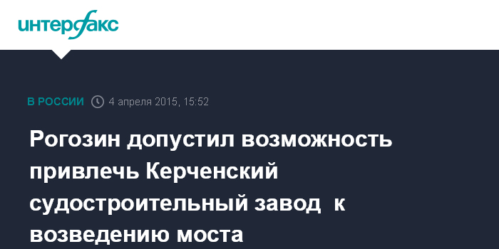 Москва. 4 апреля. INTERFAX.RU - Крупнейший в Крыму Керченский судостроительный завод "Залив" может быть использован при строительстве моста через пролив, отделяющий Крым от других регионов России, сообщил вице-премьер Дмитрий Рогозин.