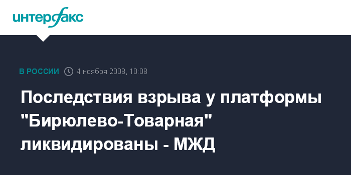 Последствия взрыва у платформы "Бирюлево-Товарная" ликвидированы - МЖД
