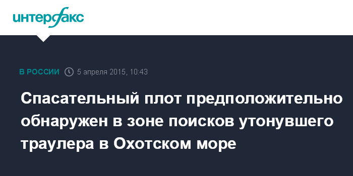 Спасательный плот предположительно обнаружен в зоне поисков утонувшего траулера в Охотском море