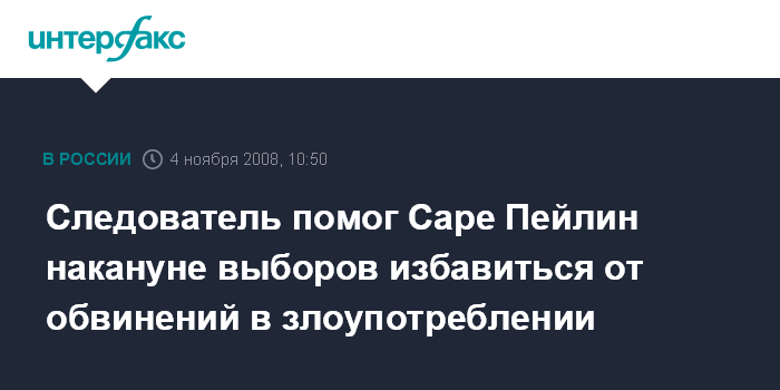 Cледователь помог Саре Пейлин накануне выборов избавиться от обвинений в злоупотреблении