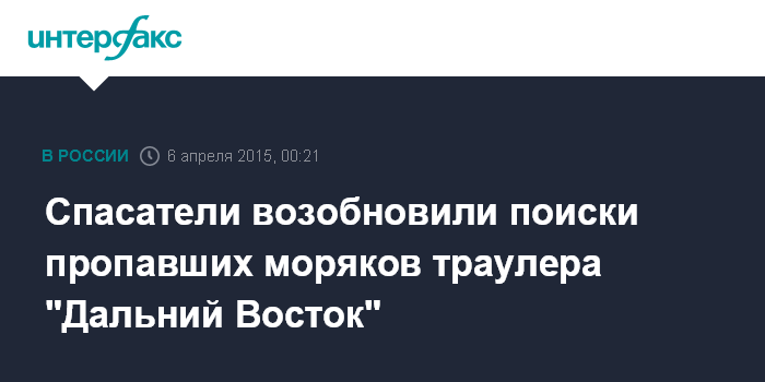 Москва. 6 апреля. INTERFAX.RU - Поиски 13 пропавших моряков с траулера "Дальний Восток", затонувшего в Охотском море, после ночного перерыва возобновились в понедельник утром по местному времени, сообщил "Интерфаксу" представитель ГУ МЧС России по Камчатскому краю.