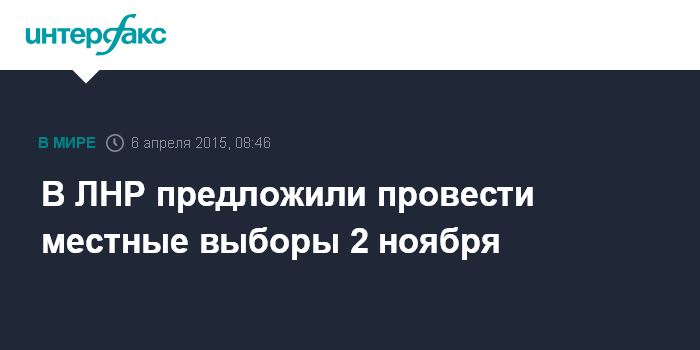 "Мы предлагаем датой проведения местных выборов на территории наших Республик (ЛНР и ДНР) определить 2 ноября 2015 года. За год до этой даты, 2 ноября 2014 года, мы уже провели выборы главы Республики и выборы депутатов Народного Совета, которые прошли без каких либо нарушений, в присутствии международных наблюдателей, с соблюдением всех принципов демократии", - цитирует депутата Народного Совета ЛНР Олега Акимова Луганский информационный центр.