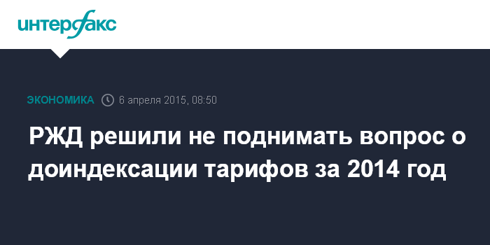 Москва. 6 апреля. INTERFAX.RU - ОАО "РЖД" не планирует поднимать вопрос о доиндексации тарифов за 2014 год, сообщил "Интерфаксу" первый вице-президент ОАО "РЖД" Вадим Морозов.