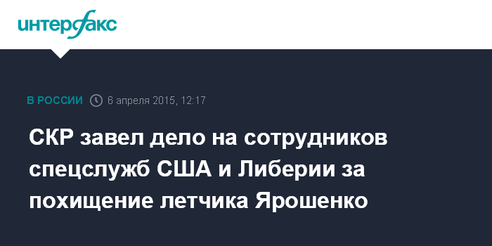 СКР завел дело на сотрудников спецслужб США и Либерии за похищение летчика Ярошенко