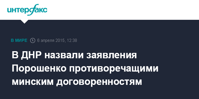 В ДНР назвали заявления Порошенко противоречащими минским договоренностям