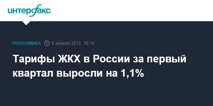 За январь-март 2015 года тарифы ЖКХ выросли на 1,1%. В январе-марте 2014 года тарифы ЖКХ увеличились меньше - на 0,5%, а в целом за прошлый год они повысились на 9,4%.