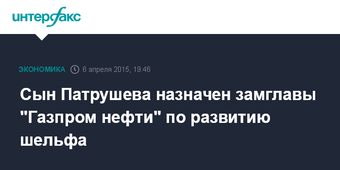 Сын Патрушева назначен замглавы "Газпром нефти" по развитию шельфа