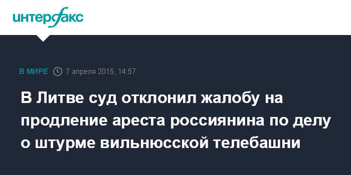 В Литве суд отклонил жалобу на продление ареста россиянина по делу о штурме вильнюсской телебашни