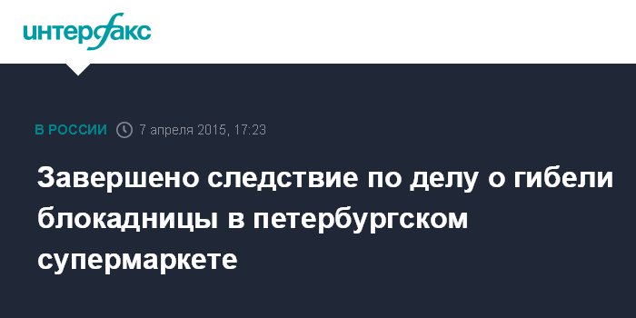 Завершено следствие по делу о гибели блокадницы в петербургском супермаркете