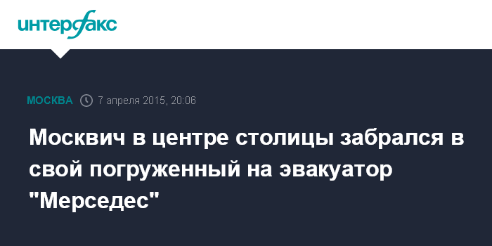 Москвич в центре столицы забрался в свой погруженный на эвакуатор "Мерседес"