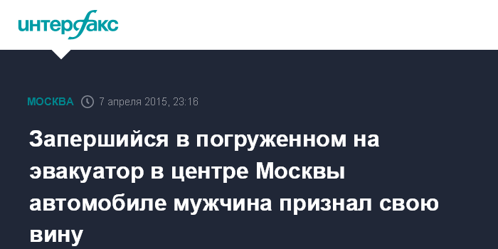 Запершийся в погруженном на эвакуатор в центре Москвы автомобиле мужчина признал свою вину
