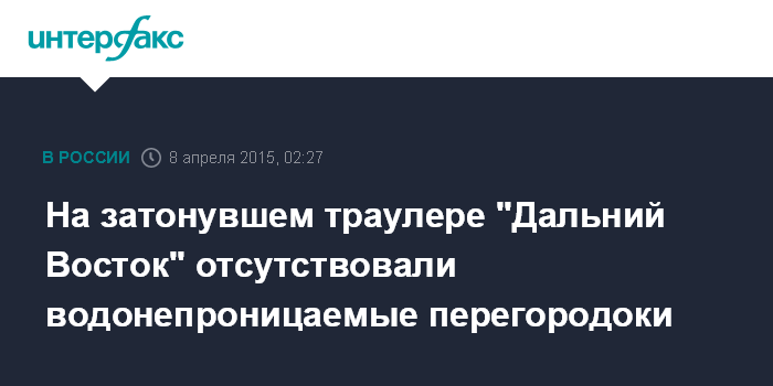 На затонувшем траулере "Дальний Восток" отсутствовали водонепроницаемые перегородоки