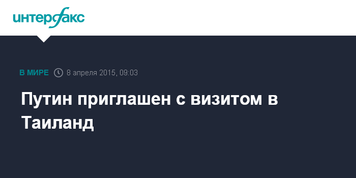 Москва. 8 апреля. INTERFAX.RU - Премьер-министр Таиланда Прают Чан-Оча пригласил президента РФ Владимира Путина посетить королевство с визитом.
