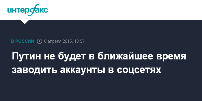 Путин не будет в ближайшее время заводить аккаунты в соцсетях