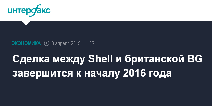 Москва. 8 апреля. INTERFAX.RU – Завершение сделки между нидерландско-британской Royal Dutch Shell и британской BG Group на $70 млрд ожидается в начале 2016 года, сообщил председатель совета директоров BG Эндрю Гульд в ходе телефонной конференции.