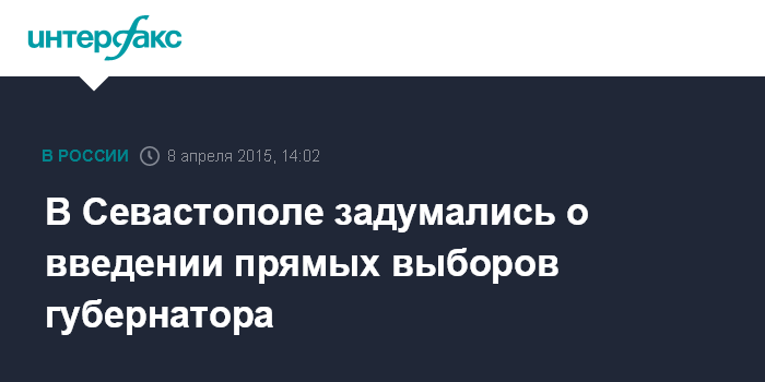 Москва. 8 апреля. INTERFAX.RU - Временная комиссия Законодательного собрания Севастополя заявляет о необходимости ввести изменения в устав города и предусмотреть прямые выборы губернатора.