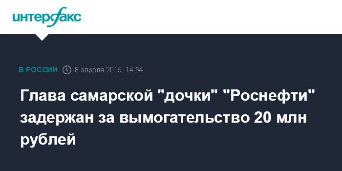 Глава самарской "дочки" "Роснефти" задержан за вымогательство 20 млн рублей