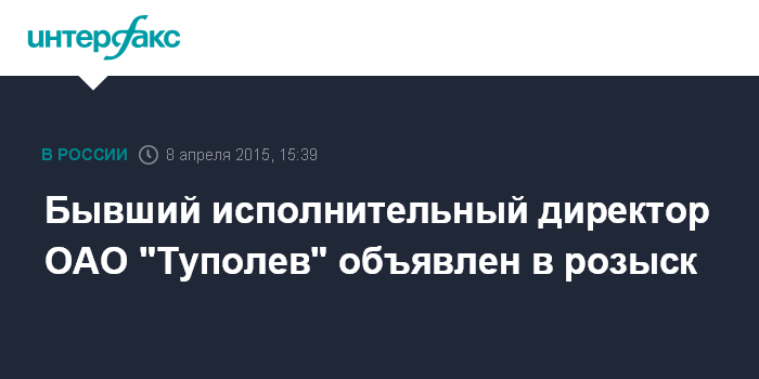 Бывший исполнительный директор ОАО "Туполев" объявлен в розыск