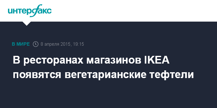 Москва. 8 апреля. INTERFAX.RU - Шведский производитель мебели IKEA, который известен не только товарами со своеобразными скандинавскими названиями, но традиционными блюдами, которые подают в ресторанах магазина, решил добавить в меню вегетарианские тефтели.