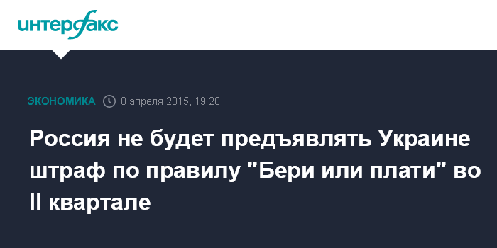 Россия не будет предъявлять Украине штраф по правилу "Бери или плати" во II квартале