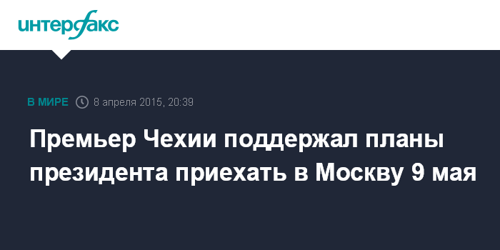 Москва. 8 апреля. INTERFAX.RU - Глава правительства Чехии Богуслав Соботка заявил, что не выступает против визита лидера страны Милоша Земана в Москву на праздничные торжества по случаю Дня Победы 9 мая, сообщает агентство Associated Press.