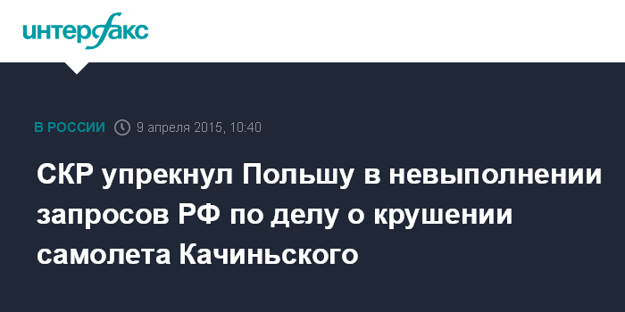"Мы оцениваем сотрудничество с польскими следственными органами на протяжении всего периода расследования как конструктивное и плодотворное. Тем не менее, на настоящий момент остаются еще не выполненные польскими коллегами запросы российской стороны, что является одной из причин, по которым не может быть вынесено окончательное процессуальное решение", - сообщил "Интерфаксу" официальный представитель СКР Владимир Маркин.