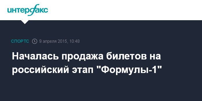 Москва. 9 апреля. INTERFAX.RU - Продажа билетов на этап "Формулы-1" "Гран-при России" началась в кассе "Сочи Автодрома".