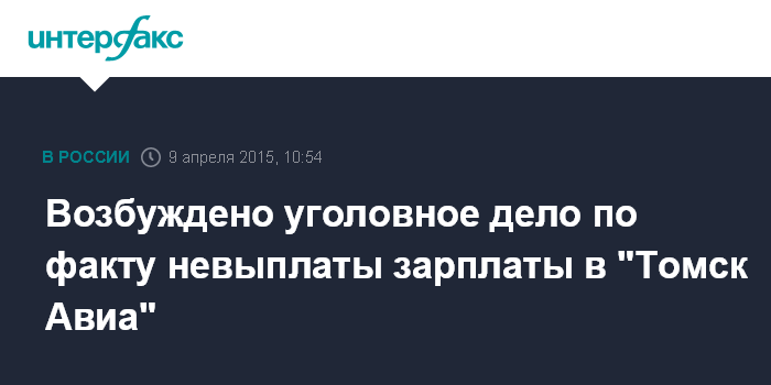 Возбуждено уголовное дело по факту невыплаты зарплаты в "Томск Авиа"