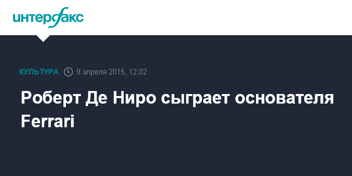 Москва. 9 апреля. INTERFAX.RU - Американский актер Роберт Де Ниро сыграет знаменитого Энцо Феррари, который основал одноименную легендарную итальянскую марку.