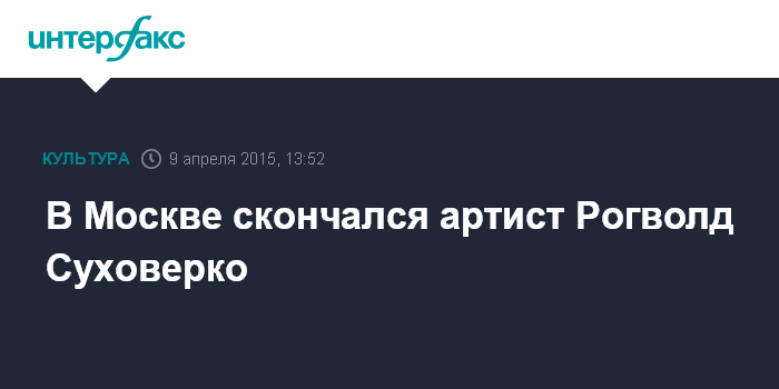 Москва. 9 апреля. INTERFAX.RU - Заслуженный артист РФ Рогволд Суховерко скончался в Москве на 74-м году жизни, сообщили в четверг "Интерфаксу" в театре "Современник".