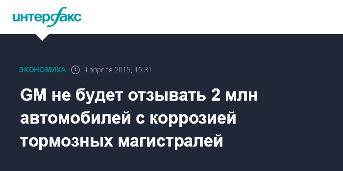 GM не будет отзывать 2 млн автомобилей с коррозией тормозных магистралей