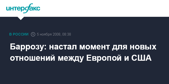 По мнению Баррозу, "настал момент для новых отношений между Европой и США". "Я хочу заверить сенатора Обаму в поддержке со стороны Европейской Комиссии и в моей личной поддержке", - отметил председатель ЕК.