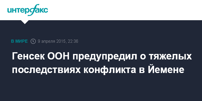 Москва. 9 апреля. INTERFAX.RU - Операция ВВС арабской коалиции и наступательные действия повстанцев-хуситов в Йемене могут привести к тяжелым последствиям в регионе. Об этом, как сообщает EFE, заявил генсек ООН Пан Ги Мун.