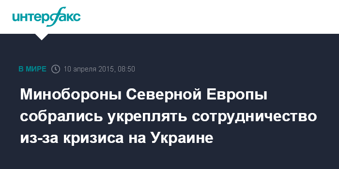 Москва. 10 апреля. INTERFAX.RU - Министры обороны стран Северной Европы выступили с совместным заявлением, в котором высказались за активизацию оборонного сотрудничества в связи с событиями на Украине.
