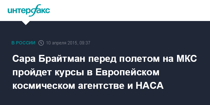Кроме того, сказал он, на 22-26 июня запланирована подготовка Брайтман в американском аэрокосмическом агентстве НАСА.