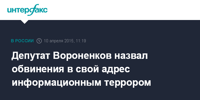 Москва. 10 апреля. INTERFAX.RU - Депутат Госдумы от КПРФ Денис Вороненков, которого следствие хочет привлечь к уголовной ответственности по делу о мошенническом хищении, высказал мнение, что против него развязан "информационный террор".
