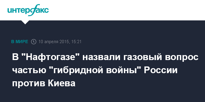 Москва. 10 апреля. INTERFAX.RU - Председатель правления украинской компании "Нафтогаз" Андрей Коболев, выступая в пятницу в штаб-квартире НАТО, заявил, что поставки газа являются одним из элементов "гибридной войны" России против Украины.