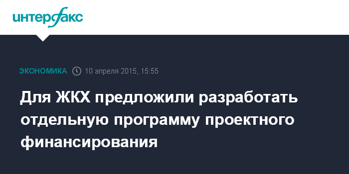 Москва. 10 апреля. INTERFAX.RU – Минэкономразвития считает возможным разработку отдельной программы поддержки инвестпроектов, реализуемых в сфере ЖКХ на основе проектного финансирования.